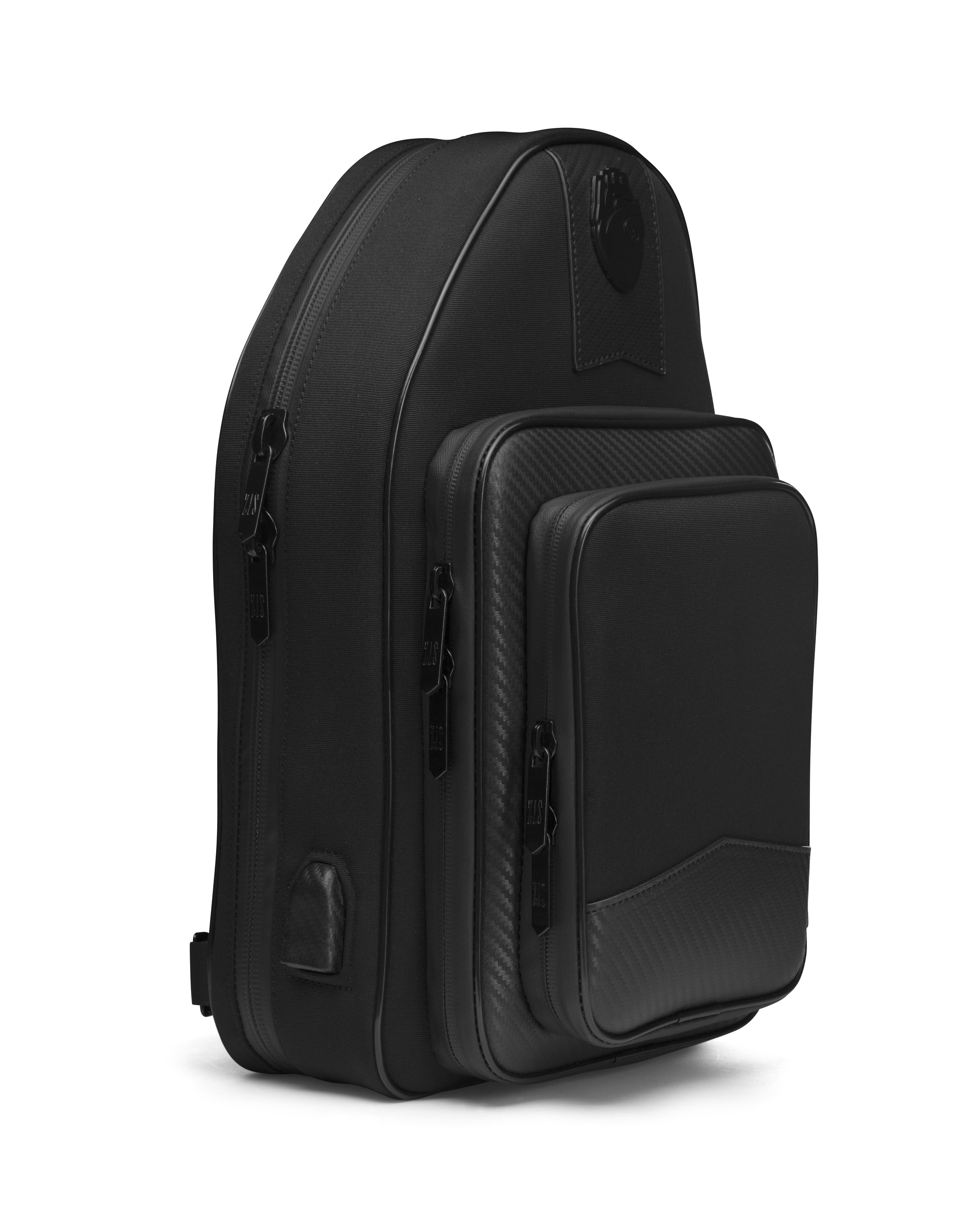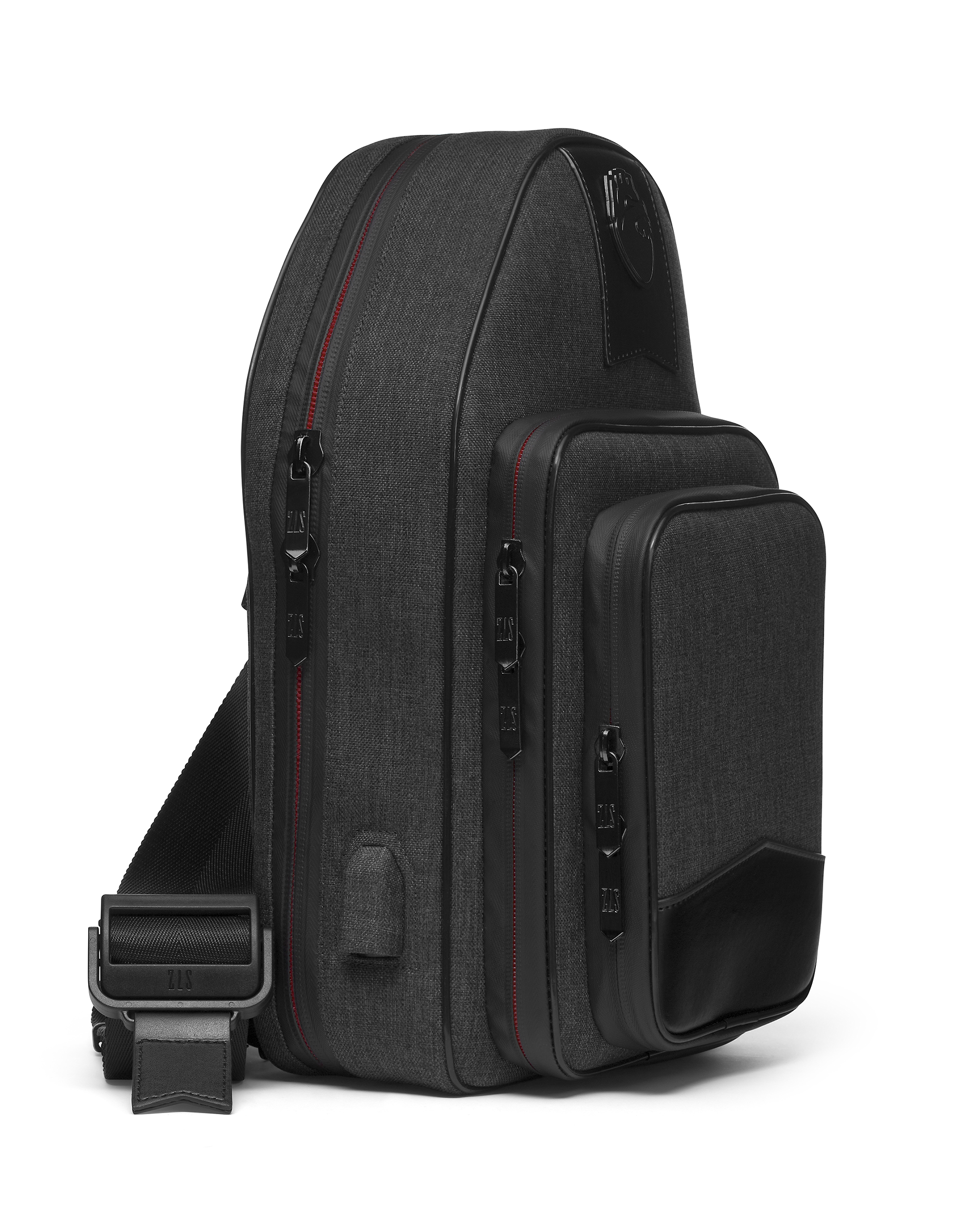 【 EXTERNAL CHARGE PORT 】 – The sling features a concealed external charge port that allows access to utilize a power bank inside the main compartment.
